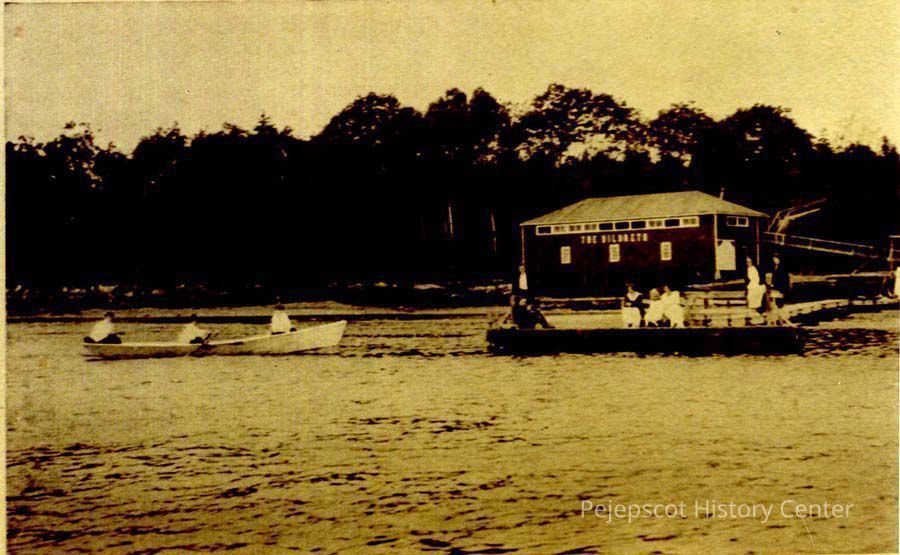 A color print copy of the Hildreth House Landing. This was a boat house fitted with a dance floor and a bowling alley on the second floor, operated by the Hildreth House for their guests. UndatedCollection