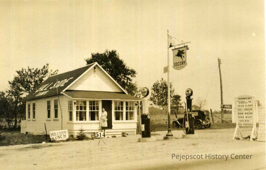 An undated black and white photograph of the Hillside Diner on the Old Portland Road (Route 1).