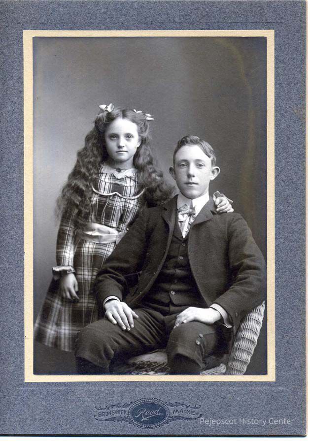 Black & white photograph of children, Hiram (seated) & Margaret Totman