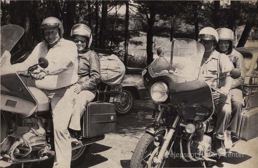 A black and white photograph of Hollis and Pearl Temple, at left, and an unidentified couple was published in The Times Record in Brunswick, Maine, on 7/22/1982.Collection