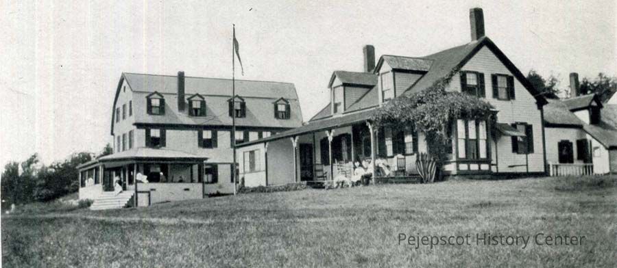 A B/W photograph of the Homestead and annex, located on Bailey Island.