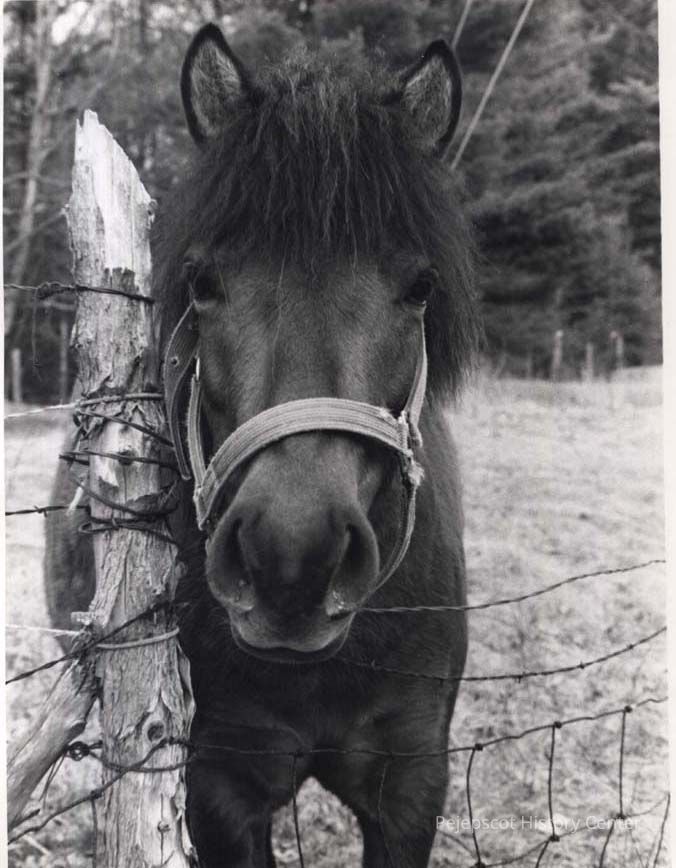 A B/W photograph of a horse at the Chippy Chase Farm. Undated