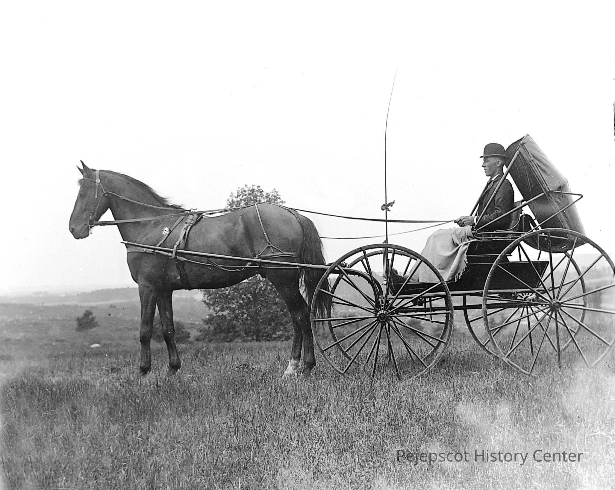 A glass plate negative with a photograph of man driving a horse and buggy. "CD-R "Glass Negative Photos" #004" Undated.