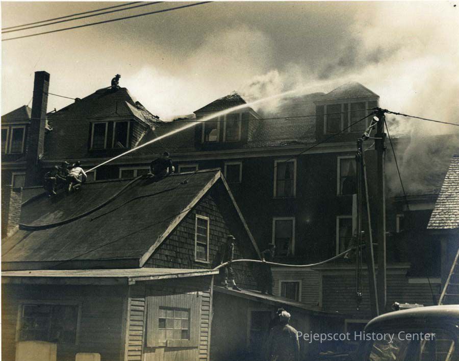 A B/W photograph of fighting the Hotel Eagle fire. 05/01/1944