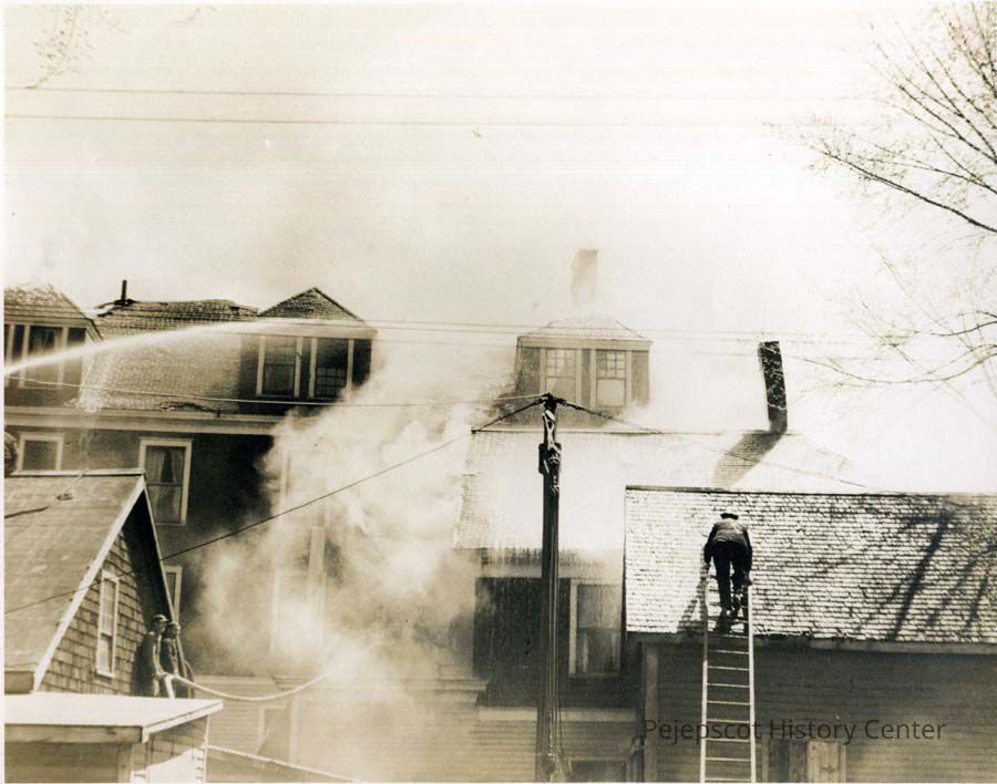 A B/W photograph of the Hotel Eagle fire. 05/01/1944