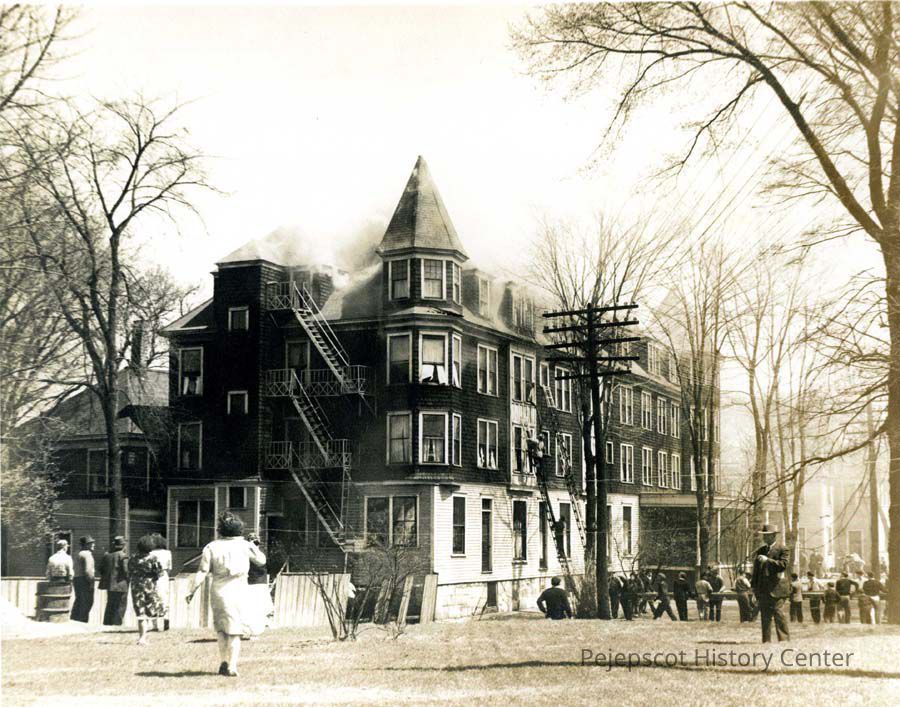A B/W photograph of the Hotel Eagle fire. 05/01/1944