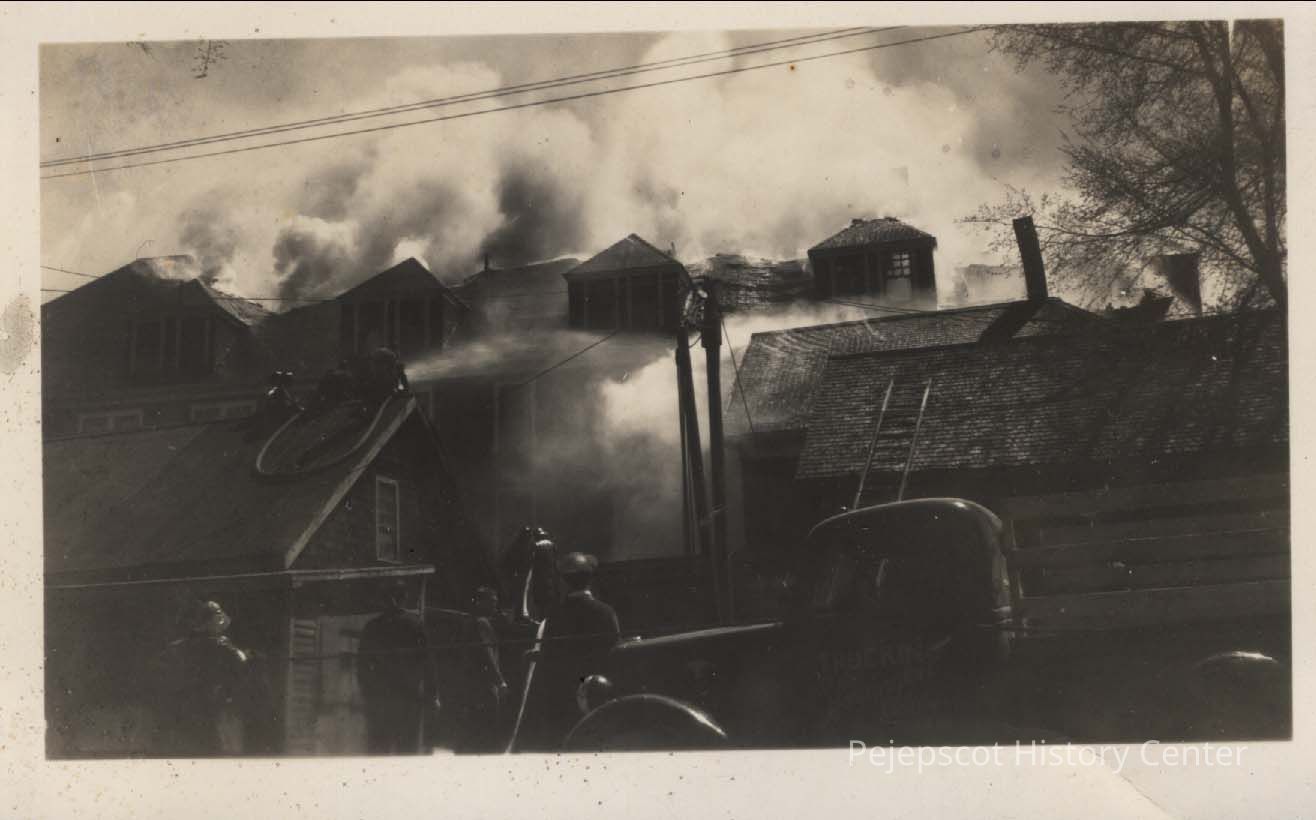 A B/W photograph of the Hotel Eagle Fire. 5/1/1944