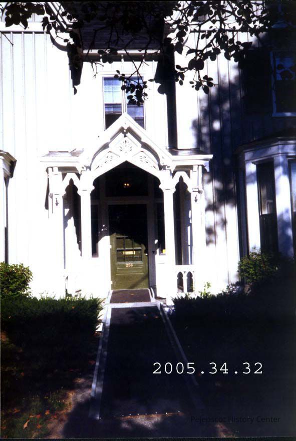 A color photograph of the house at 256 Maine Street showing the front entrance.