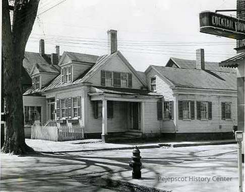 A B/W photograph of a home at the corner of Maine and Elm Streets. In 1990 is now the parking lot for Bamforth's. Undated