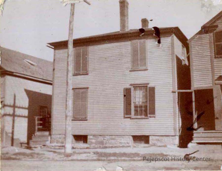 An undated B/W photo of a house in Brunswick, Maine. Location unknown. Unknown