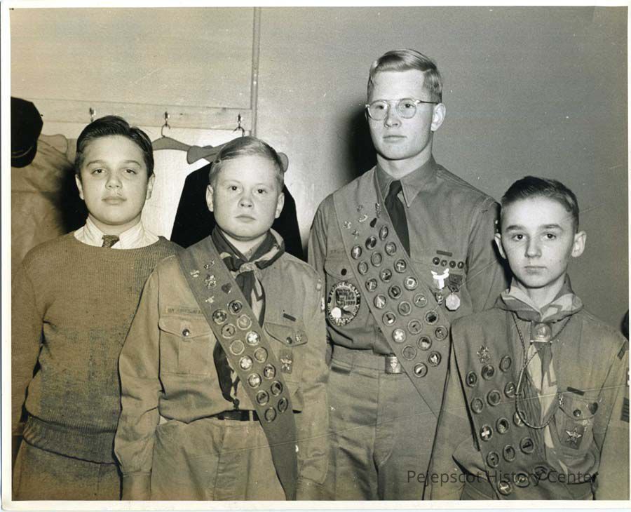 8" x 10" black and white photograph of Houston Dow, Gene Colby, Lincoln Colby and ? Colby. Probably Boy Scout uniforms. Undated