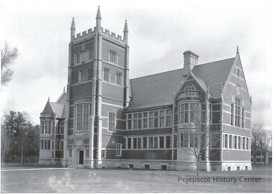 A B/W photo of Hubbard Hall at Bowdoin College. Undated