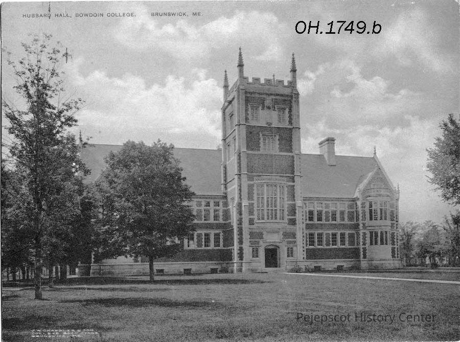 A B/W picture postcard of Hubbard Hall, Bowdoin College, Brunswick, ME. Not dated.