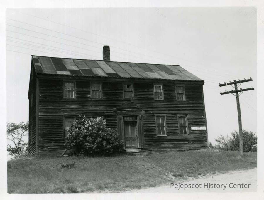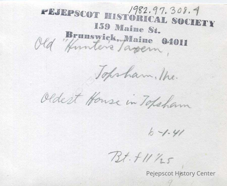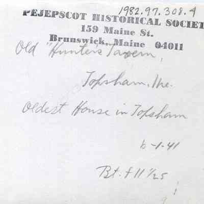 B/W photo of old "Hunter's Tavern", Topsham, June 1, 1941. Oldest building in Topsham,