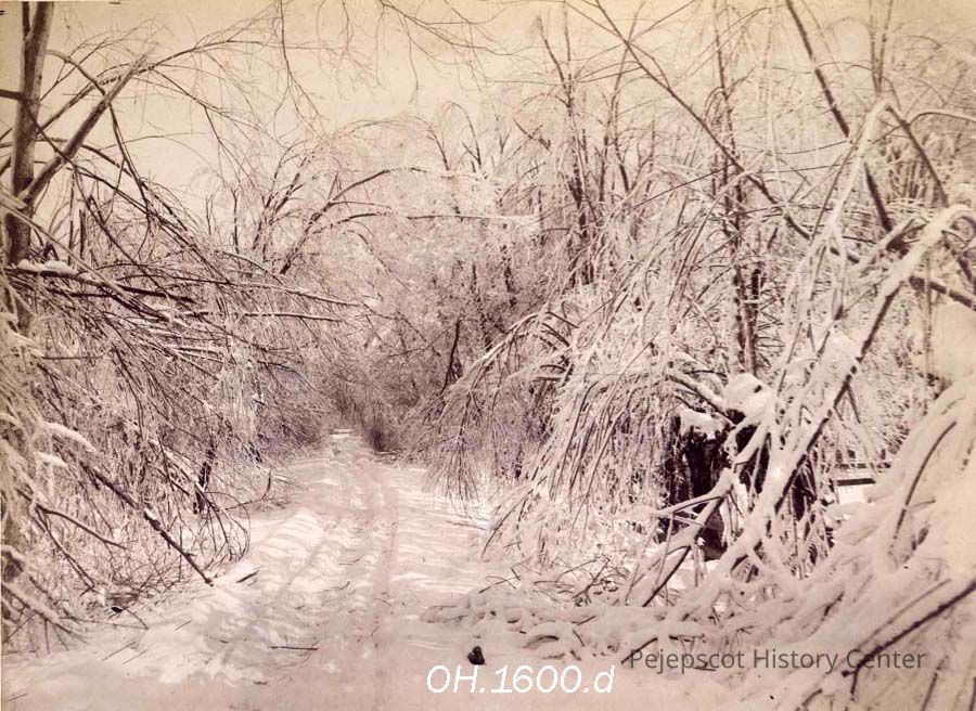 "Brunswick after Ice Storm", Feb 1891, Woodlawn Avenue, off lower end of Federal Street, Brunswick, ME. The Avenue is now part of the new Route 1 made in 1960. No date for the photograph is given.