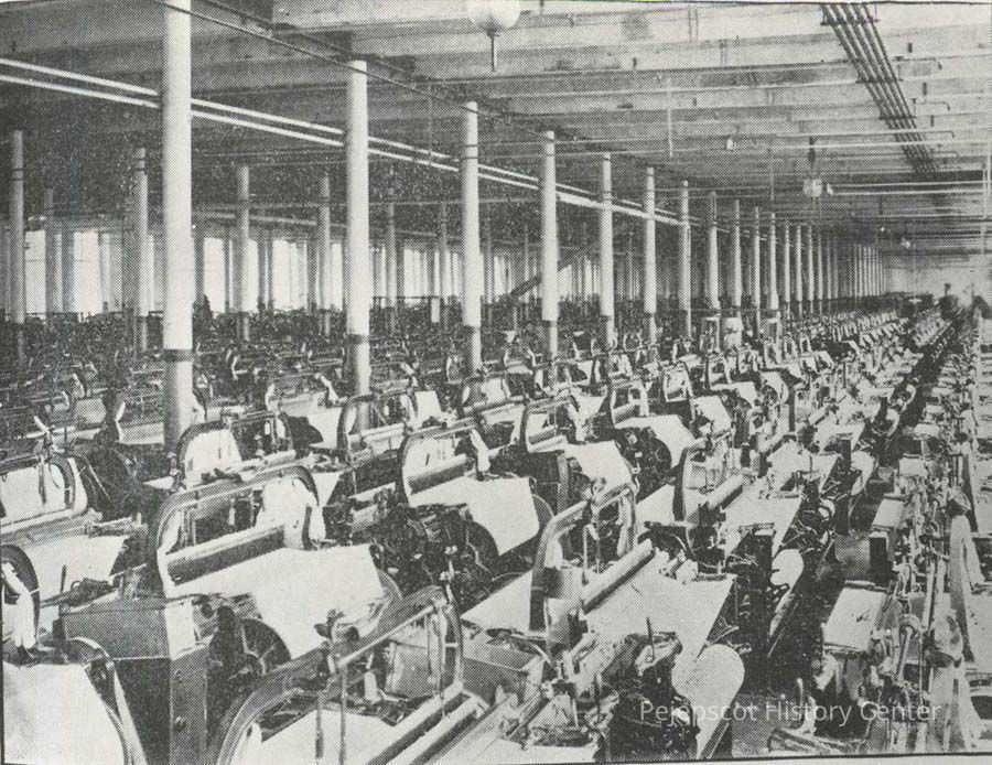 A B/W photograph of a picture from a book of a department of the Cabot Mill, Brunswick, Maine. Undated