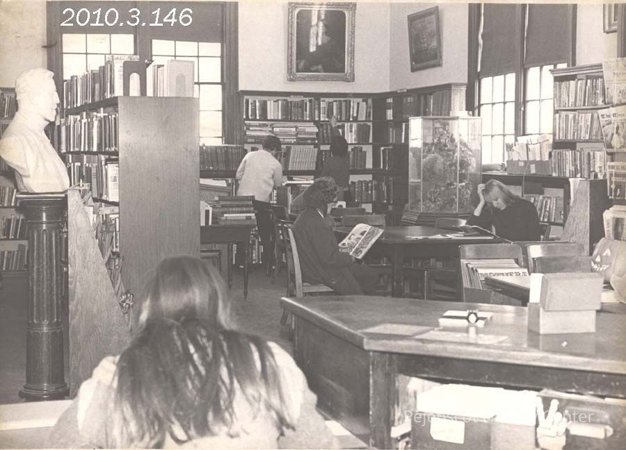 A B/W photograph of the interior of the Curtis Memorial Library. Undated