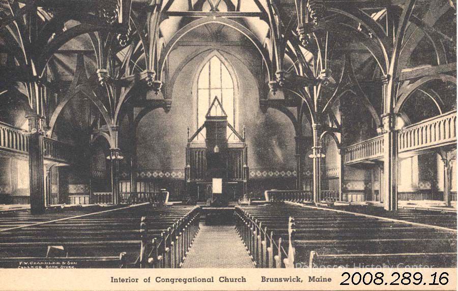 A B/W picture postcard view of the interior of the Congregational Church (First Parish Church). The card was published by F. W. Chandler & Son, The College Book Store. UndatedCollection