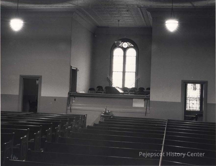 A B/W photograph of the interior of the United Methodist Church. Undated