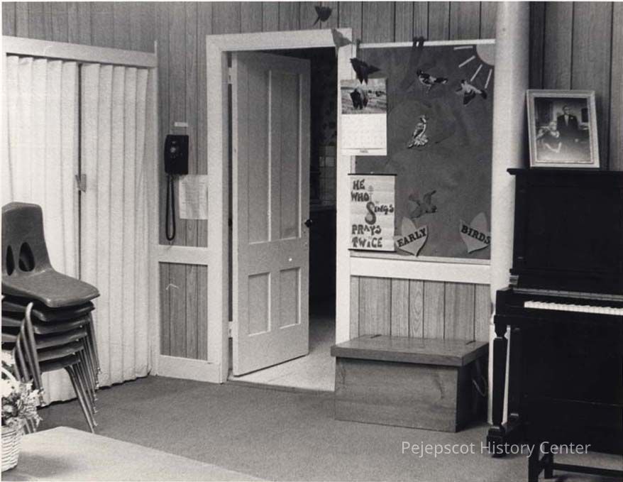 A B/W photograph of the interior of the United Methodist Church. Undated