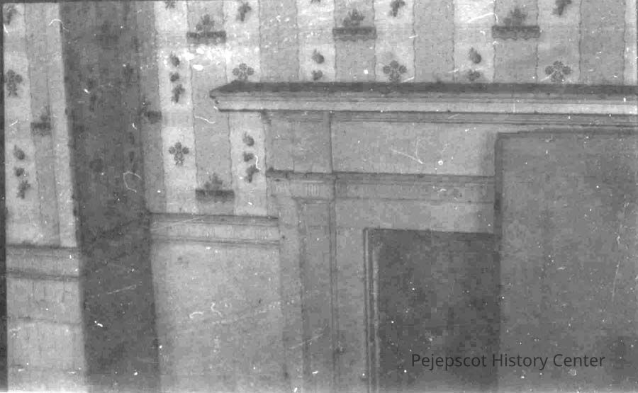 A miniature photograph of the some of the woodwork around the fireplace in the house on the corner of Highway 201 and Meadow Road. This photo will be found on page 2 of the manuscript 2011.2.2. Undated
