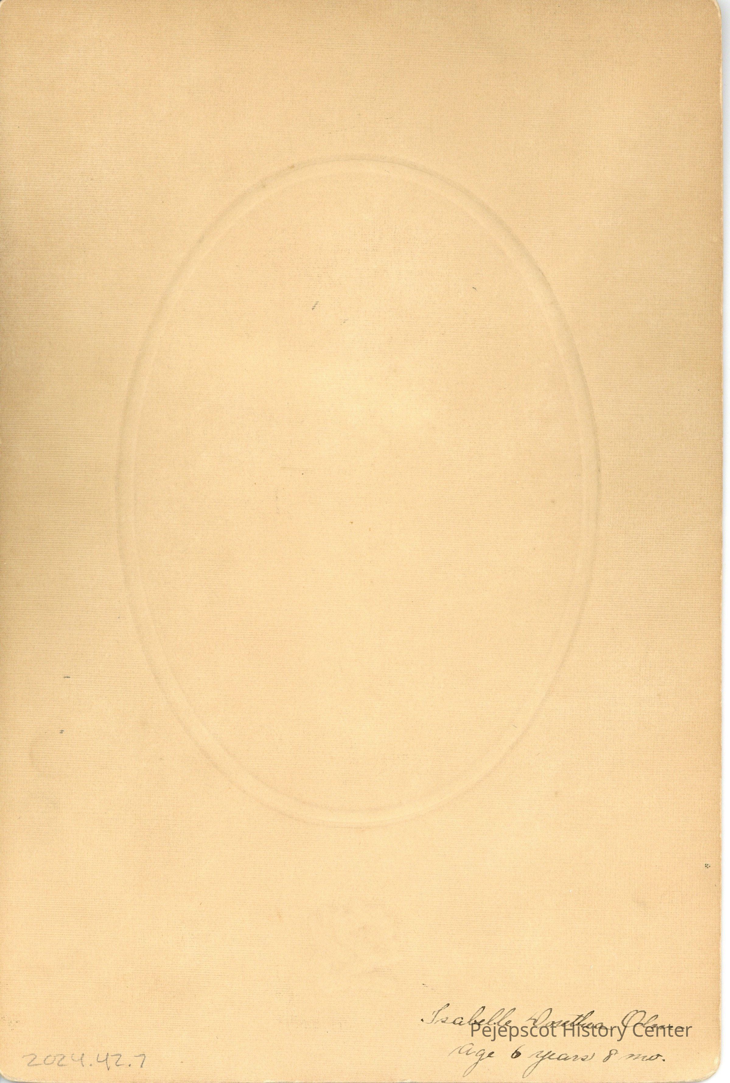 Matted studio portrait of Isabelle Dorethea Olm at age 6 years.