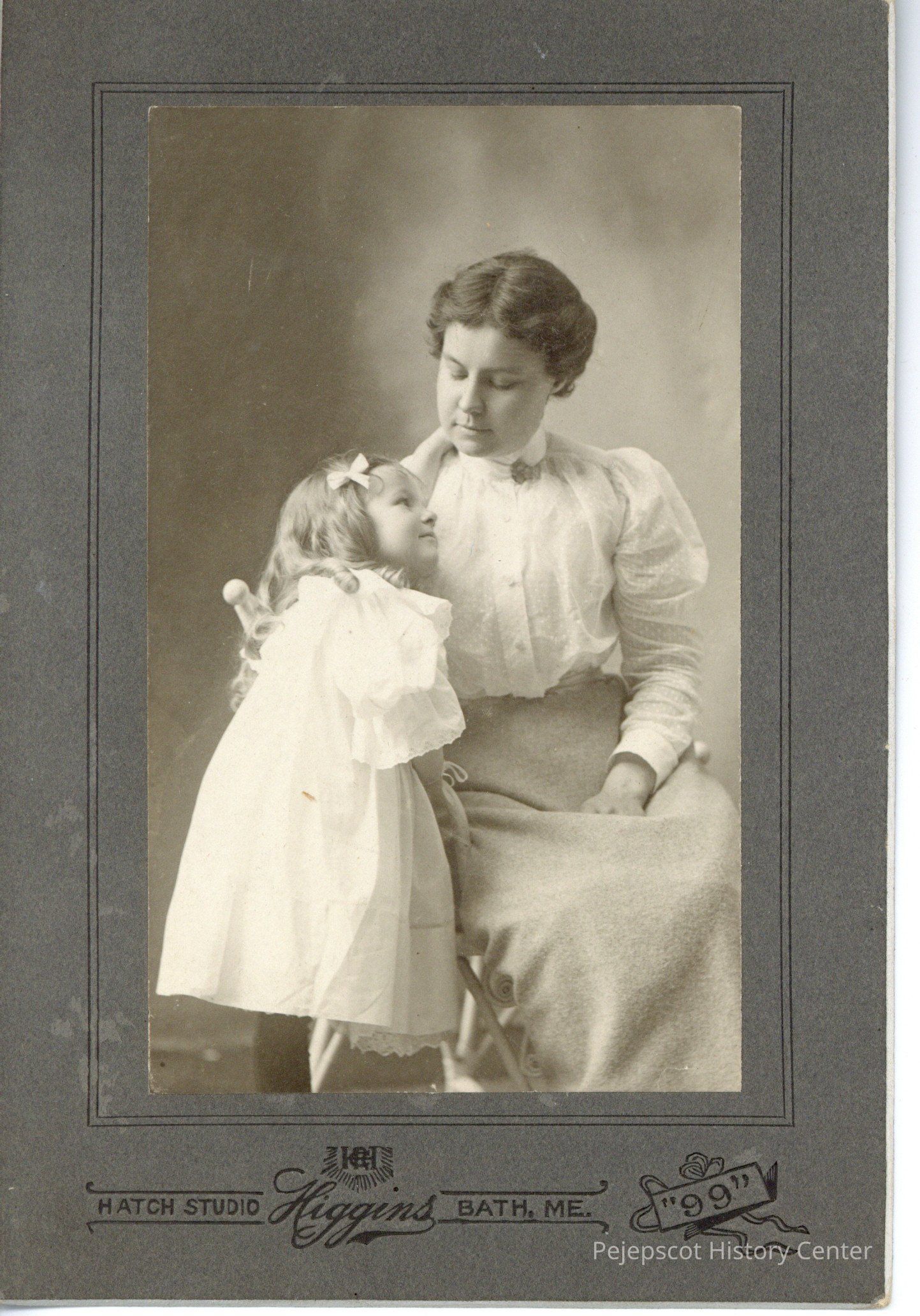 Matted studio portrait of Isabelle Dorethea Olm, age three years, with a woman who is likely her mother, Minna Olm.