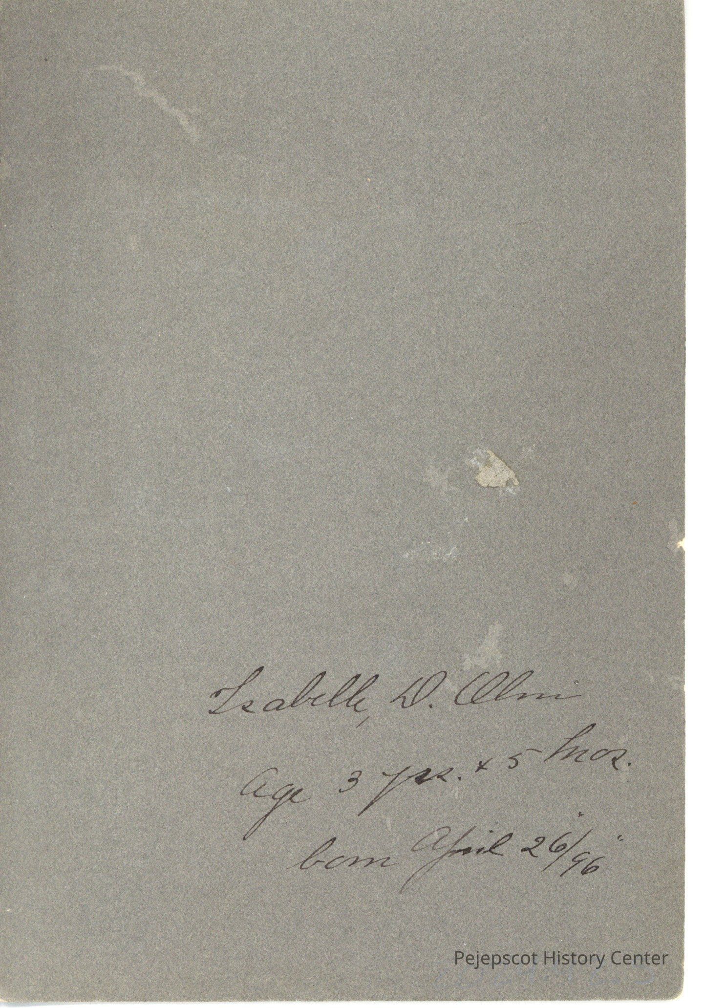 Isabelle D. Olm / Age 3 yrs. & 5 mos. / born April 26/96.
