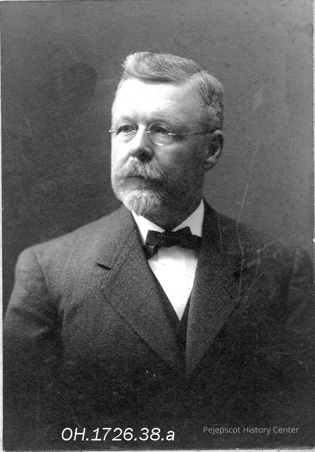 A B/W photograph of Isiah Elder former postmaster in the Old Town Hall. Photo not dated.