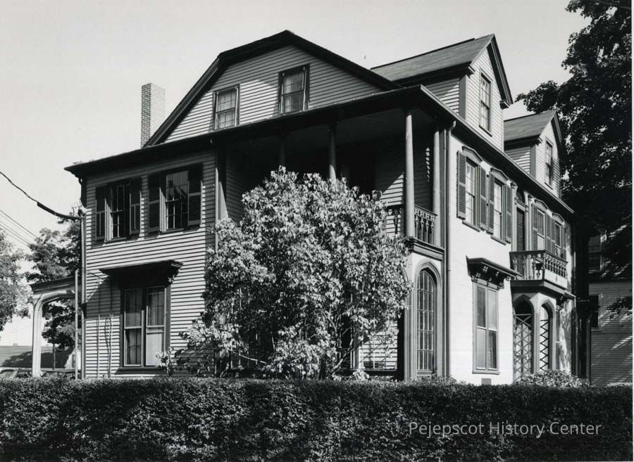 A B/W photograph of the Joshua L. Chamberlain House. This depicts the facade of the south side of the museum. c 1984