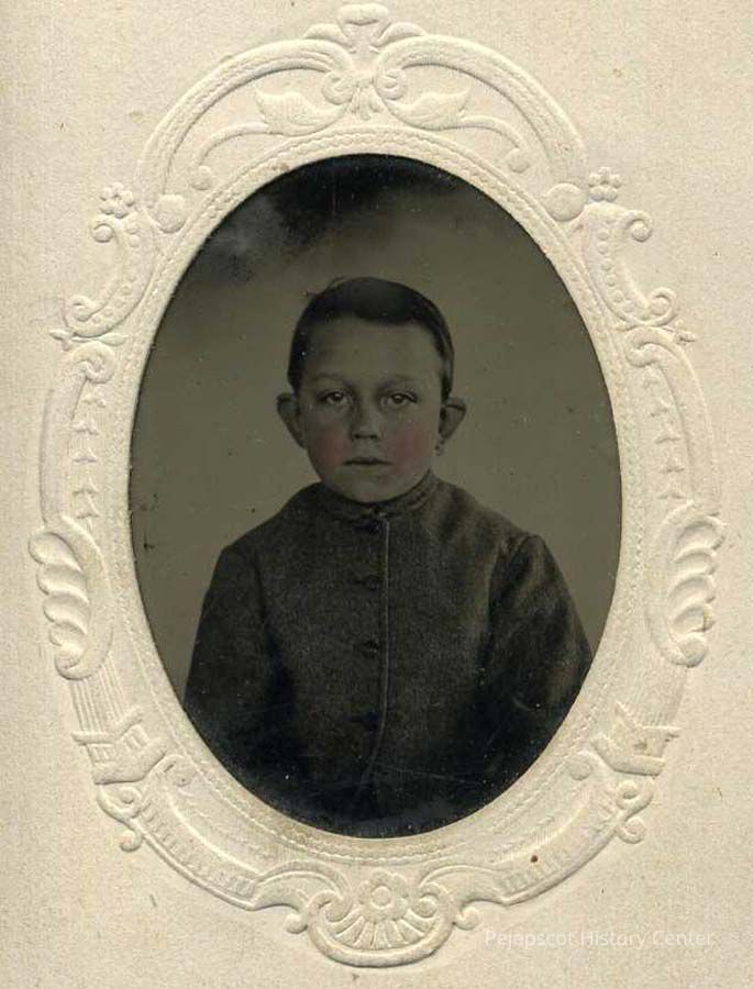 A colored in tin type of J.W. Pennell, son of Alcot Storer Pennell. It appears that rouge was added to J.W. Pennell's face. Undated.
