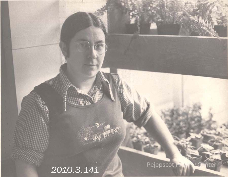 A B/W photograph of Jain Dionne owner of Earthly Goods a store selling house plants on Maine Street. Photo published 5/30/1975. Undated