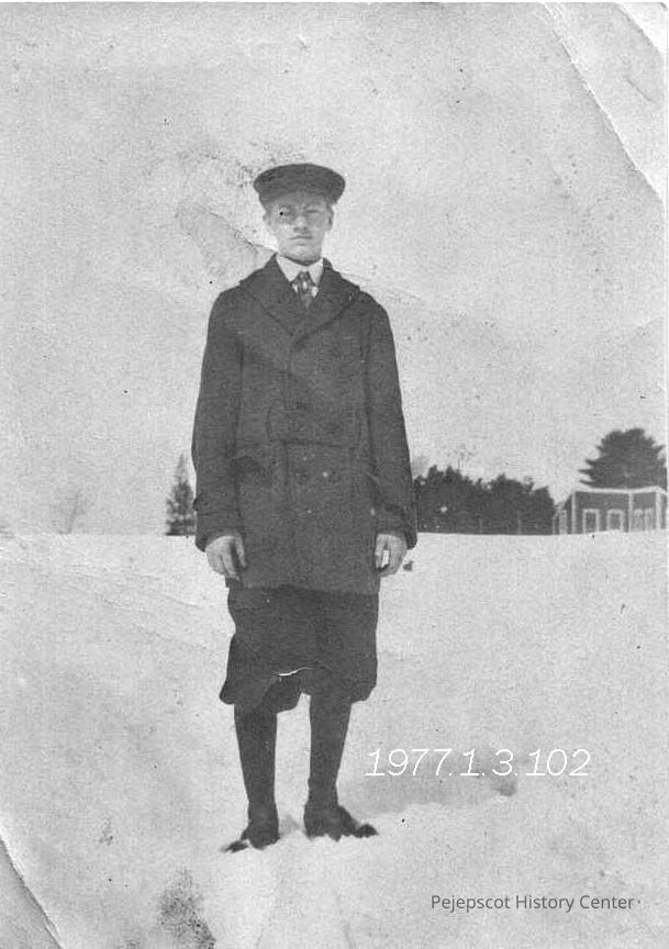 A B/W photograph of James Fowler standing in the snow. Undated