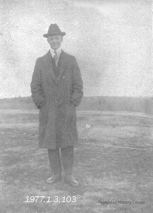 A B/W photograph of James Fowler standing and dressed in a top coat. Undated