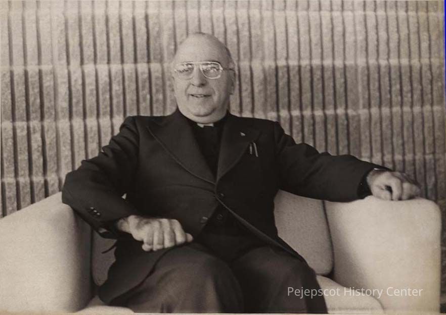 A black and white photo of James Knox, pastor of St. Charles Borromeo Church in Brunswick. A similar photo (2003.546f.6228 was published in The Times Record in Brunswick, Maine, on 7/23/1980, 7/3/1981 and 10/5/1979.