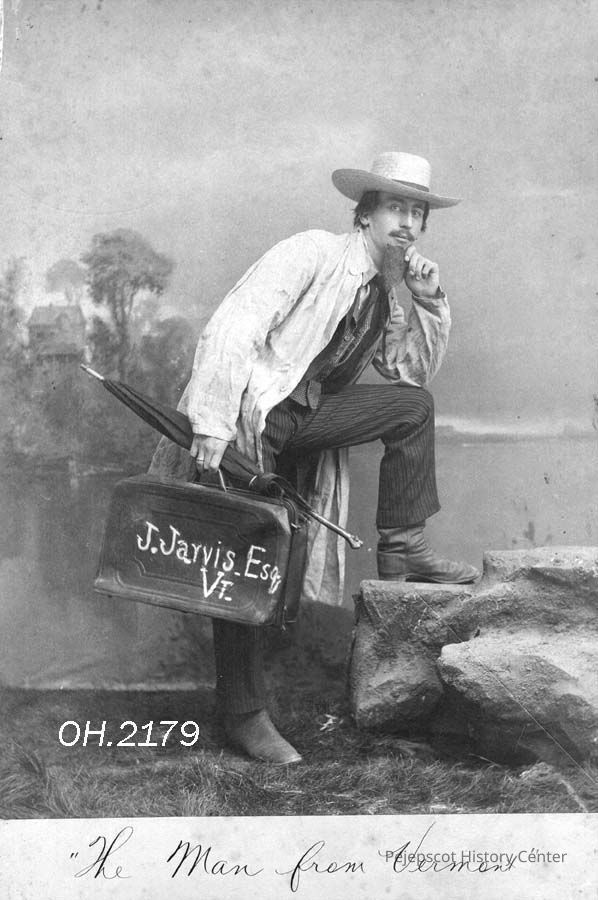 A B/W photograph of James Winchell Crawford, Brunswick High School 1891. He is shown in an acting role in "The Man from Vermont".