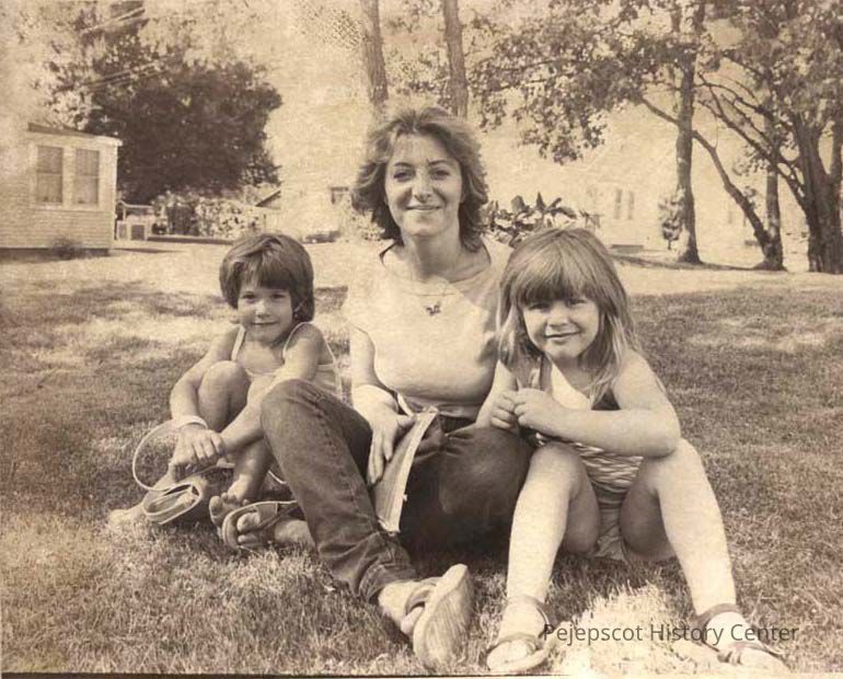 A black and white photo of Janet Swisher and her unnamed children was published in The Times Record in Brunswick, Maine, on 7/5/1983.