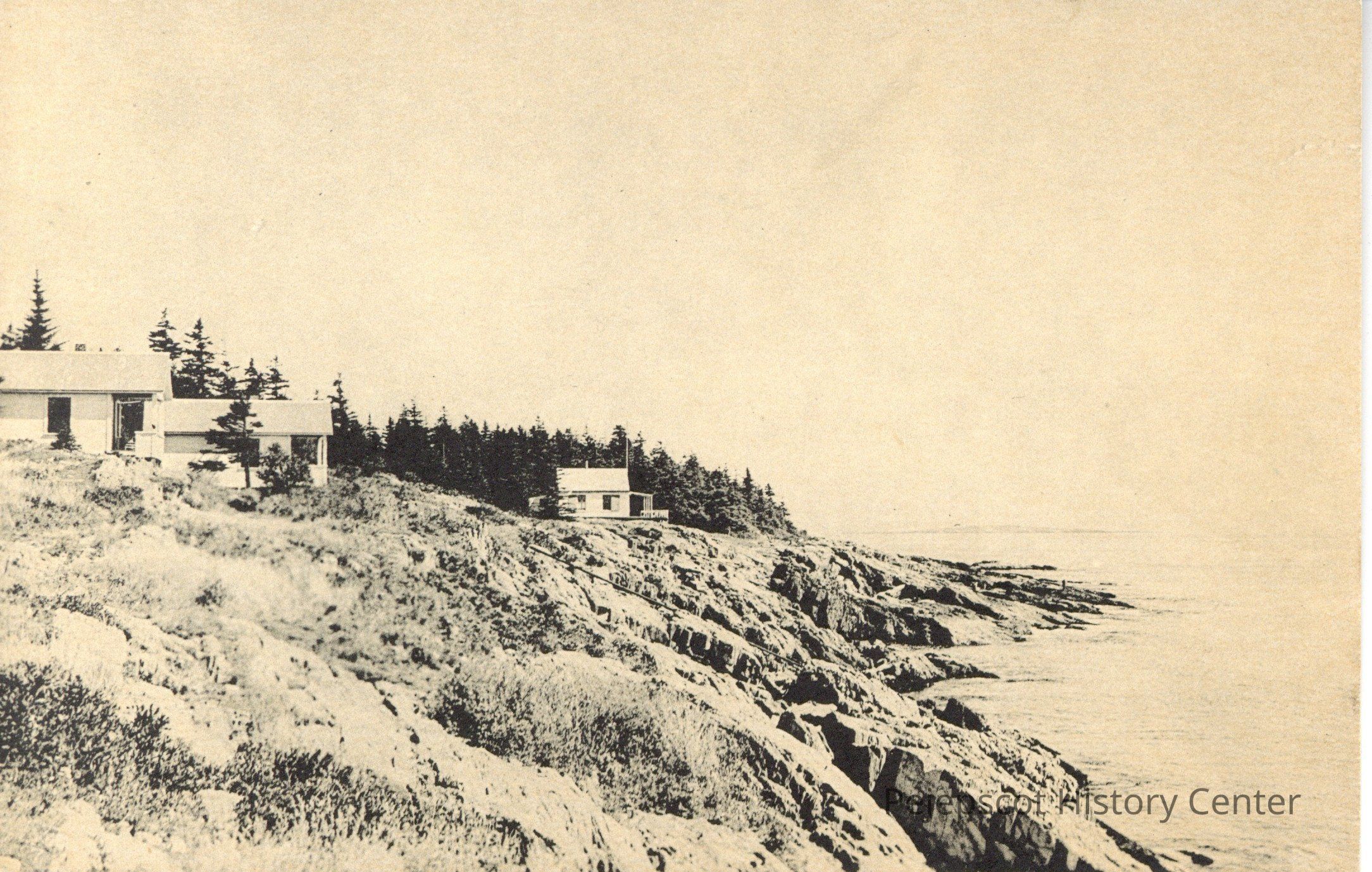 Black and white photo postcard of Jaquish Cabins, Bailey Island, Maine.Collection
