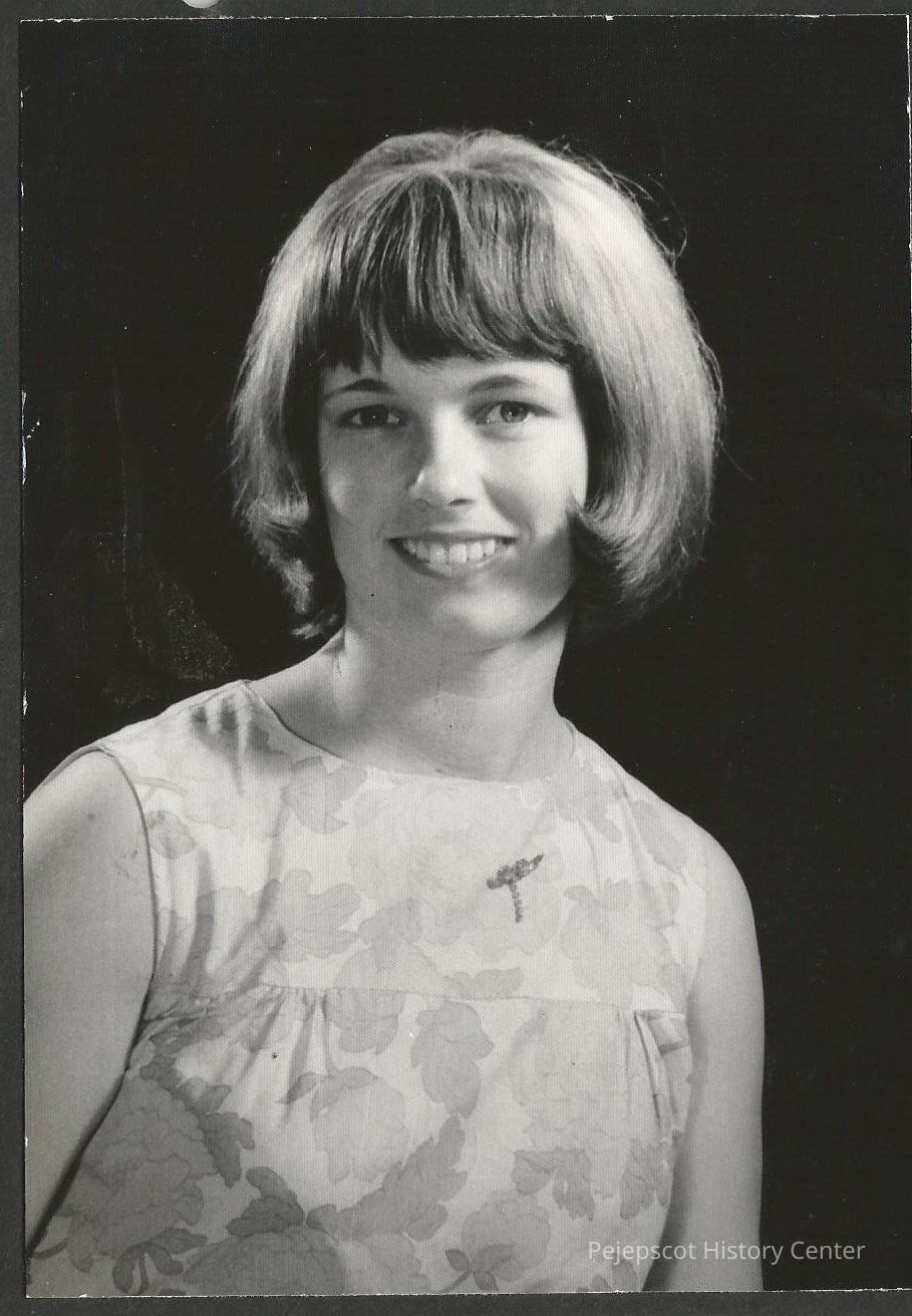 Jeanine is the daughter of Mr. & Mrs. Jacques Coulombe, of the Meadow Road, Topsham. She is 16 years old and is a Junior at St. Dominic High School in Lewiston. This photo dates from 1964-65 when she was a contestant in the Brunswick Teen Queen Pageant.Collection