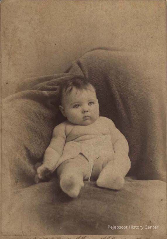 A B/W photograph of Jessie Edna Churchill, age three months, weight 18 pounds. Undated
