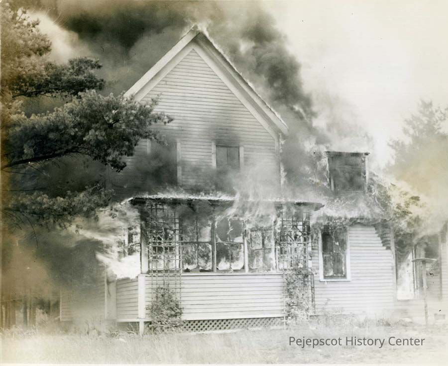 A B/W photograph of the fire at the Jewett Home, Harding Road, Brunswick July 27, 1939.