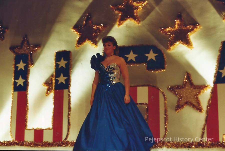 A color photograph of Jodie Labrie in opening of the second half of thee pageant. Photographers number 3-1 CYO sponsored