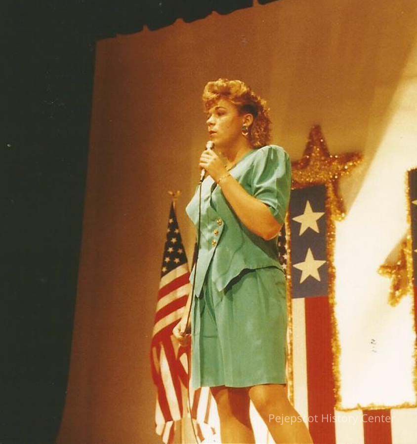 A color photograph of Jodie Labrie, participant #7,singing, "After the Sunset". Photographers number CYO sponsored
