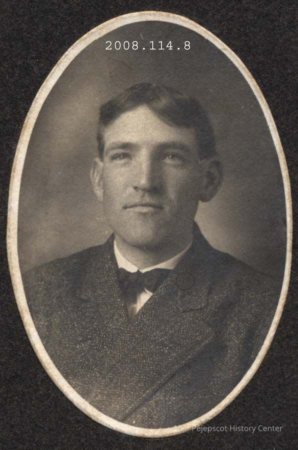 A B/W oval photograph of Joe Harvey who worked at Spinney's. Undated