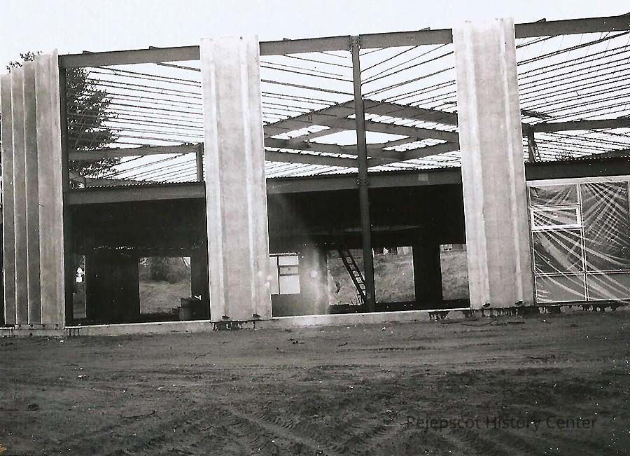 A B/W photograph of the construction of the John A. Cone School in Topsham. Marked on back, "7/12/66".