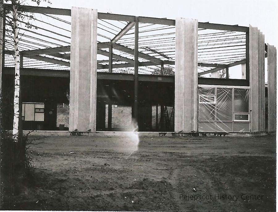 A B/W photograph of the construction of the John A. Cone School in Topsham. Marked on the back, "7/12/66".