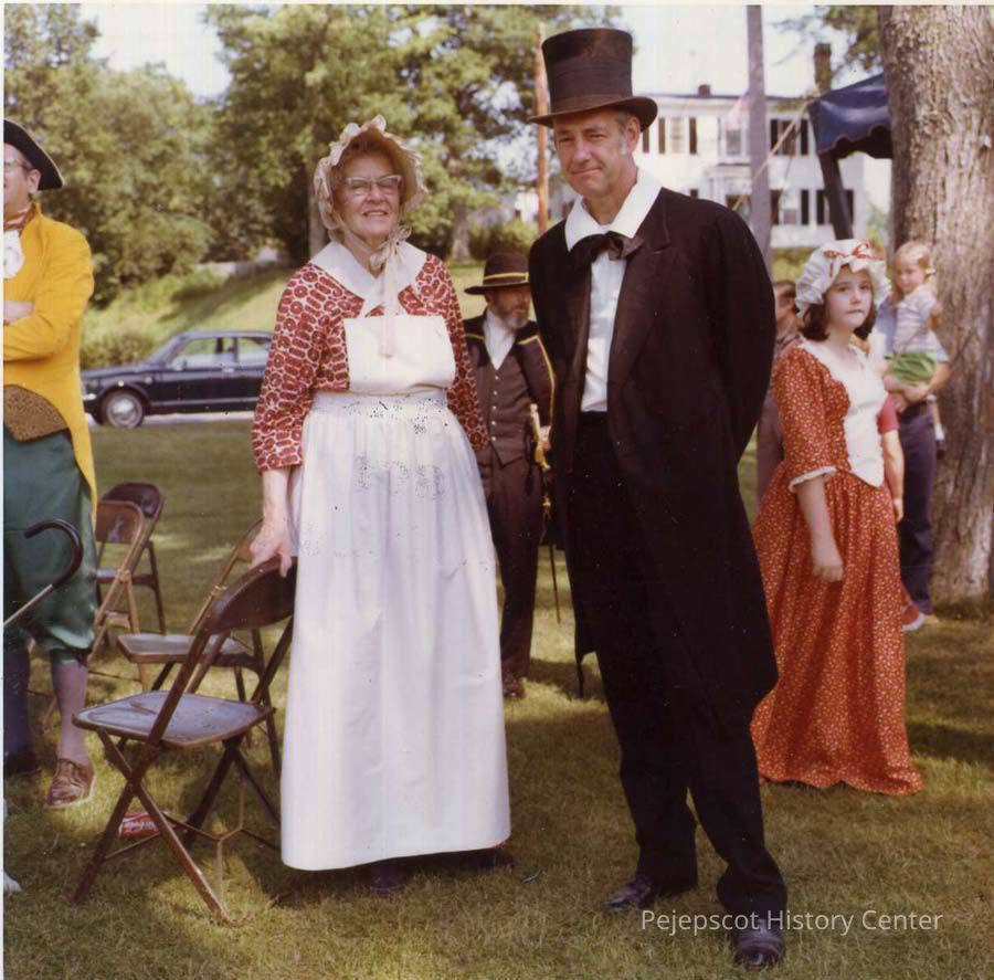 A color photograph of John Bibber and Priscilla Newgarden at the US Bicentennial parade in Brunswick, Maine. 7/4/1976