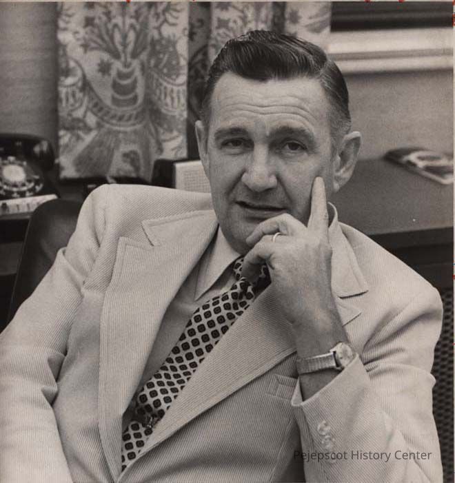 A black and white photograph of Bath Iron Work President and CEO John F. Sullivan Jr. was published in The Times Record in Brunswick, Maine, on 8/21/1975, 12/19/1977, 8/15/1978 and 5/10/1979.