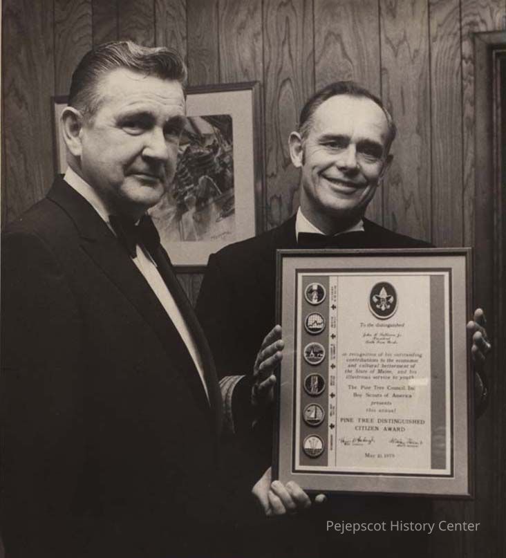 A black and white photo of Bath Iron Works President John F. Sullivan Jr. receiving an award from an unidentified man was published in The Times Record in Brunswick, Maine, on 5/11/1979.