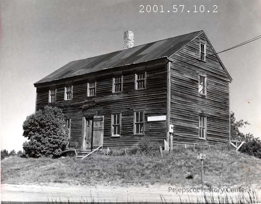 B/W photo of the John Hunter Tavern (the Old Red House) built 1770, the oldest house in Topsham. It no longer extant.